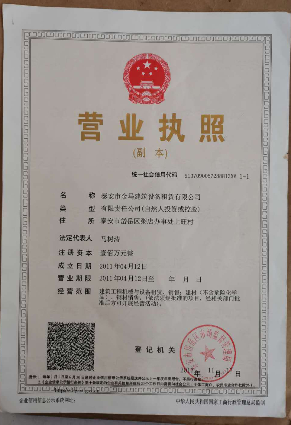 泰安市金馬建筑機械設(shè)備租賃有限公司